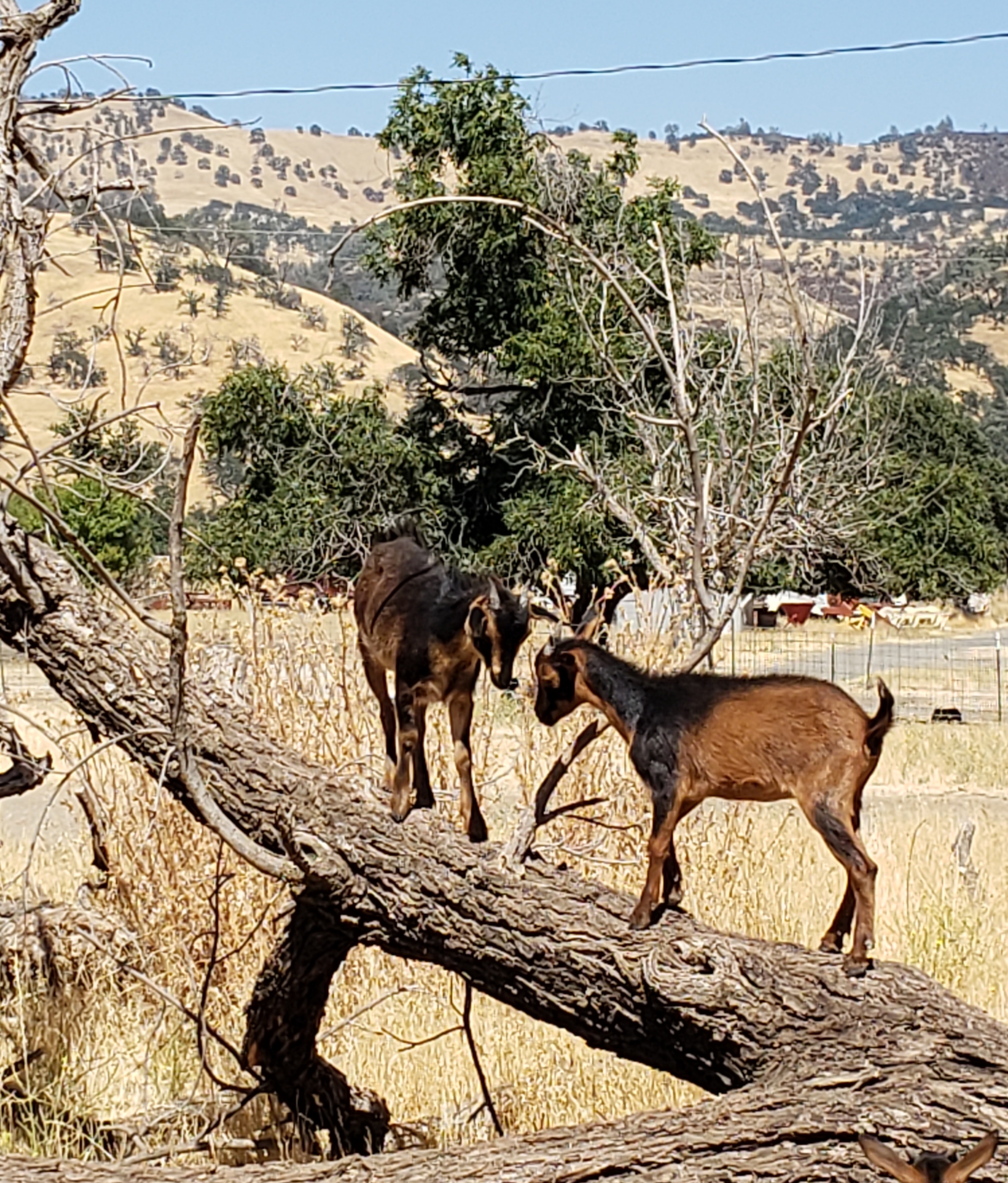 After a pasture escape they enjoyed climbing this fallen walnut tree.