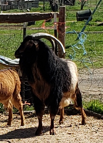 Elvis camefrom PSI Keep Ranch. He has a lovely full coat that keeps getting longer - we hope he will someday have the full coat of his sire Shetland. Elvis has a gentle and shy disposition and is well behaved. He loves living with his family and is kind to his young bucklings.