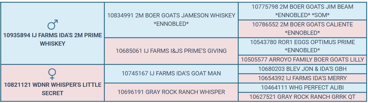 Knobel caught our attention early with his "look at me" personality and antics. Always posing and competing for the spotlight. He is solidly built and producing beautiful kids.