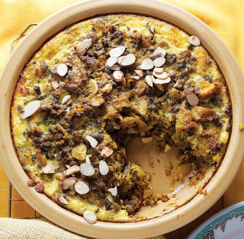 Spiced lamb mixed with chutney and tamarind paste and milk-soaked bread topped with a custard of egg and milk.