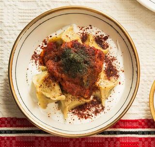 Turkish Lamb Dumplings with Yogurt and Brown Butter Tomato Sauce