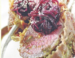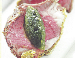 Rack with Pistachio Crust and Lamb Bacon